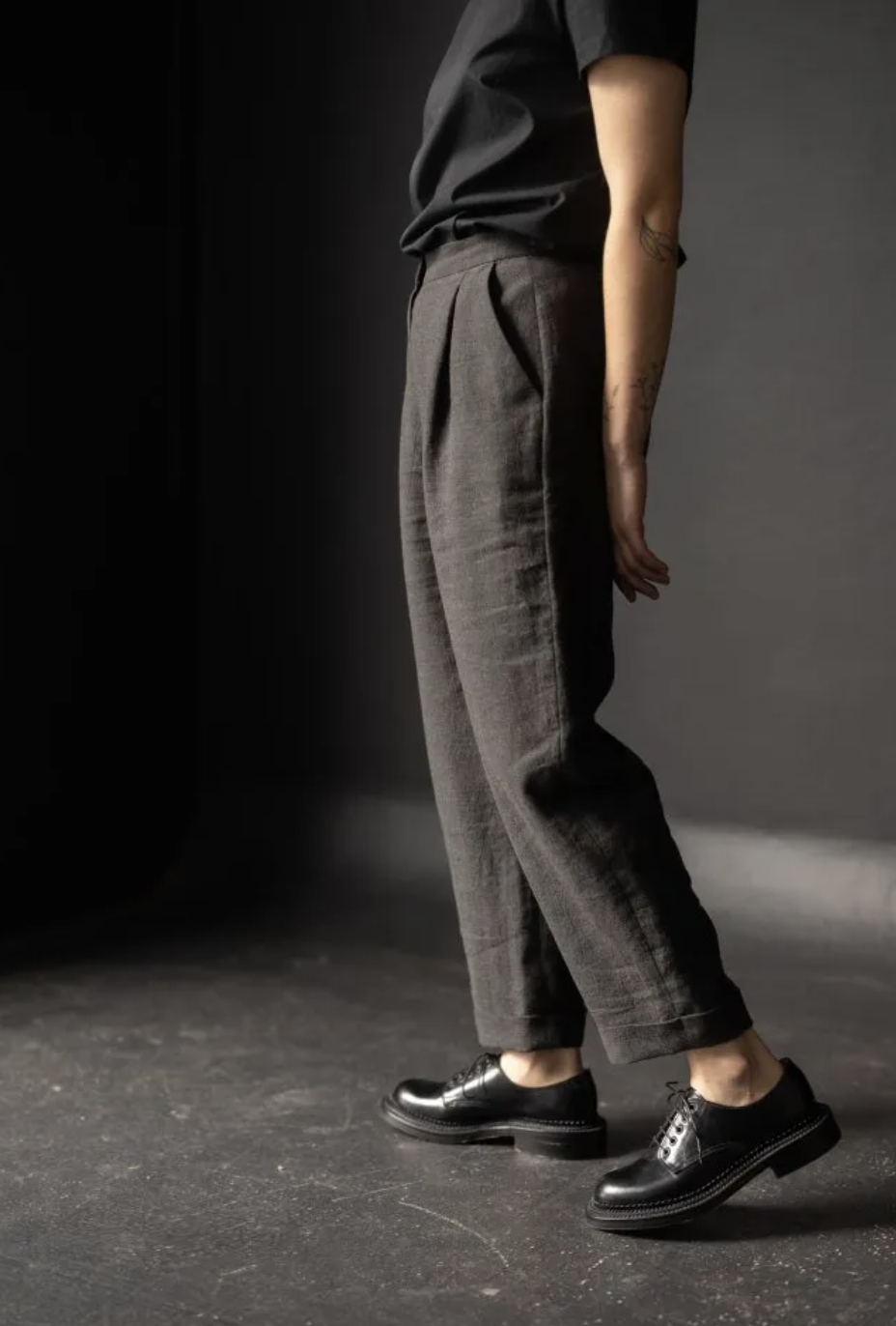 Fabric suggestions - The Pegs are ideally suited to a mid-heavyweight cotton canvas, 8oz organic sanded twill, corduroy, light-medium weight woollens and 7-10oz denim. Lighter weight cloths like linen and tencel-linen will give you a softer silhouette.