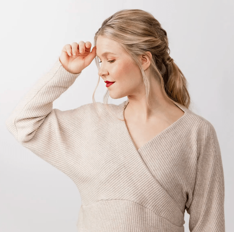 Green Ellis in Garden Slate 185 linen. Claire is a UK size 26.